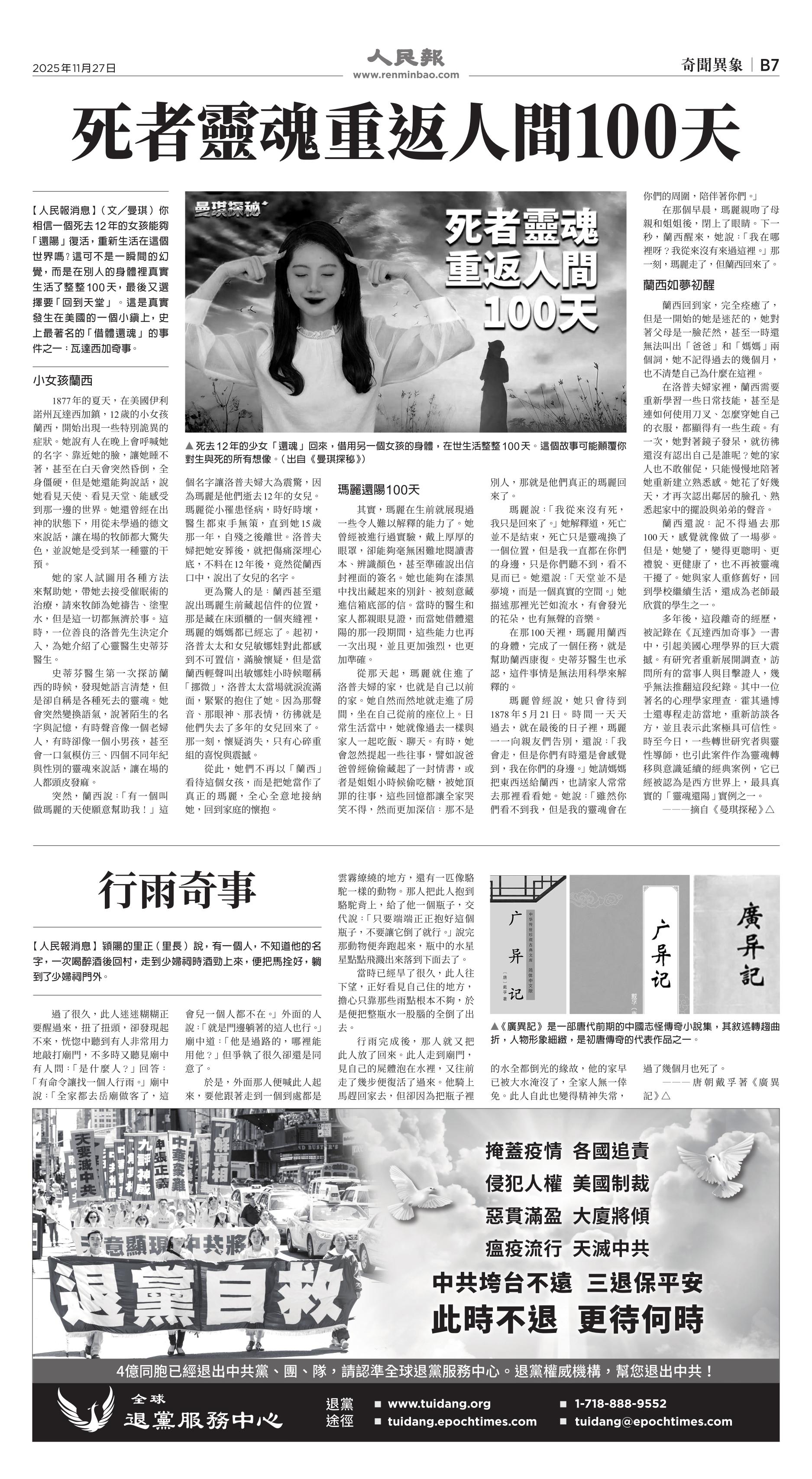 |<<  <<前一页 < 返回 第1040期  (2025年11月27日)B7版: 奇闻异象 下一页>>  >>|