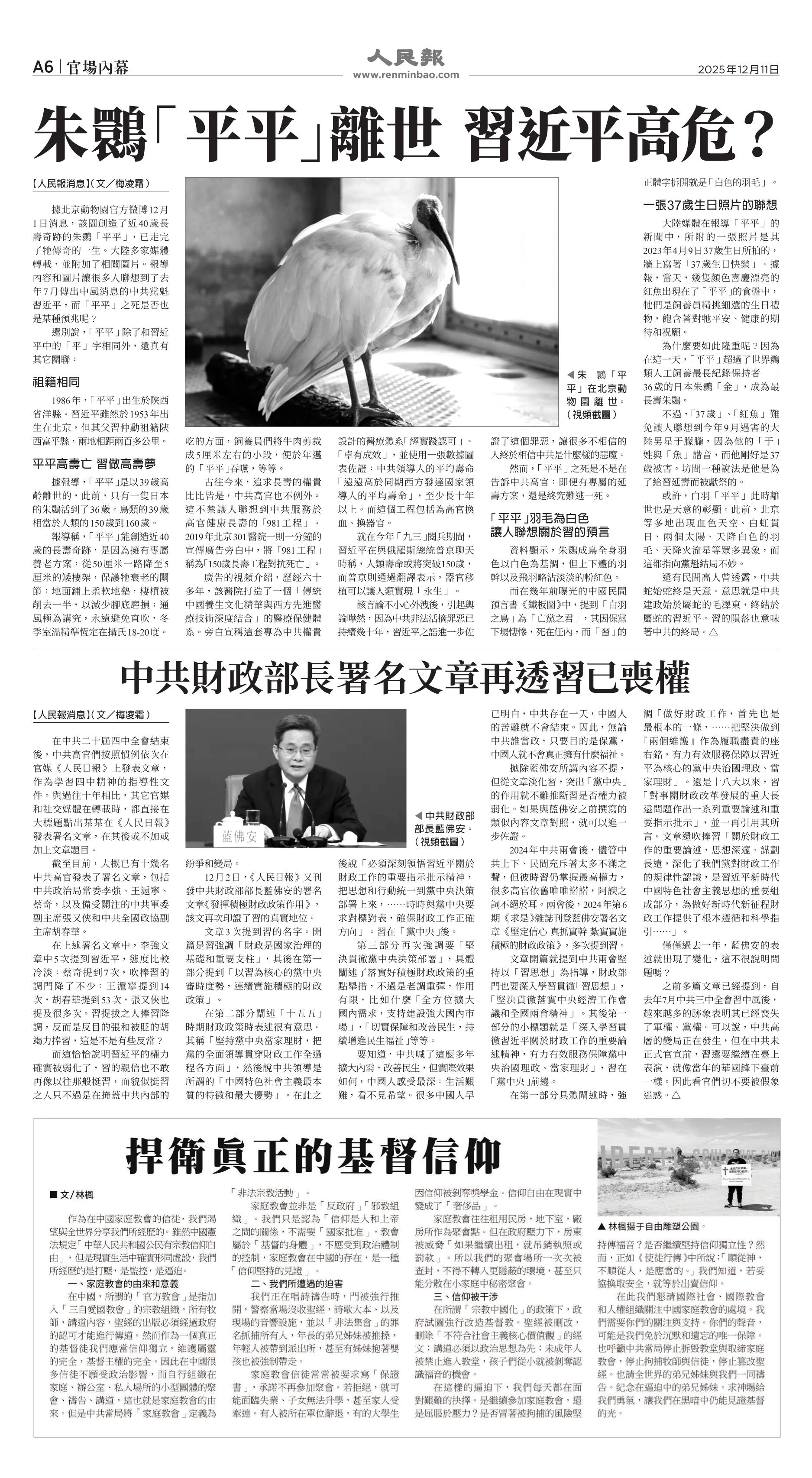 |<<  <<前一頁 < 返回 第1042期  (2025年12月11日)A6版: 官場內幕 下一頁>>  >>|