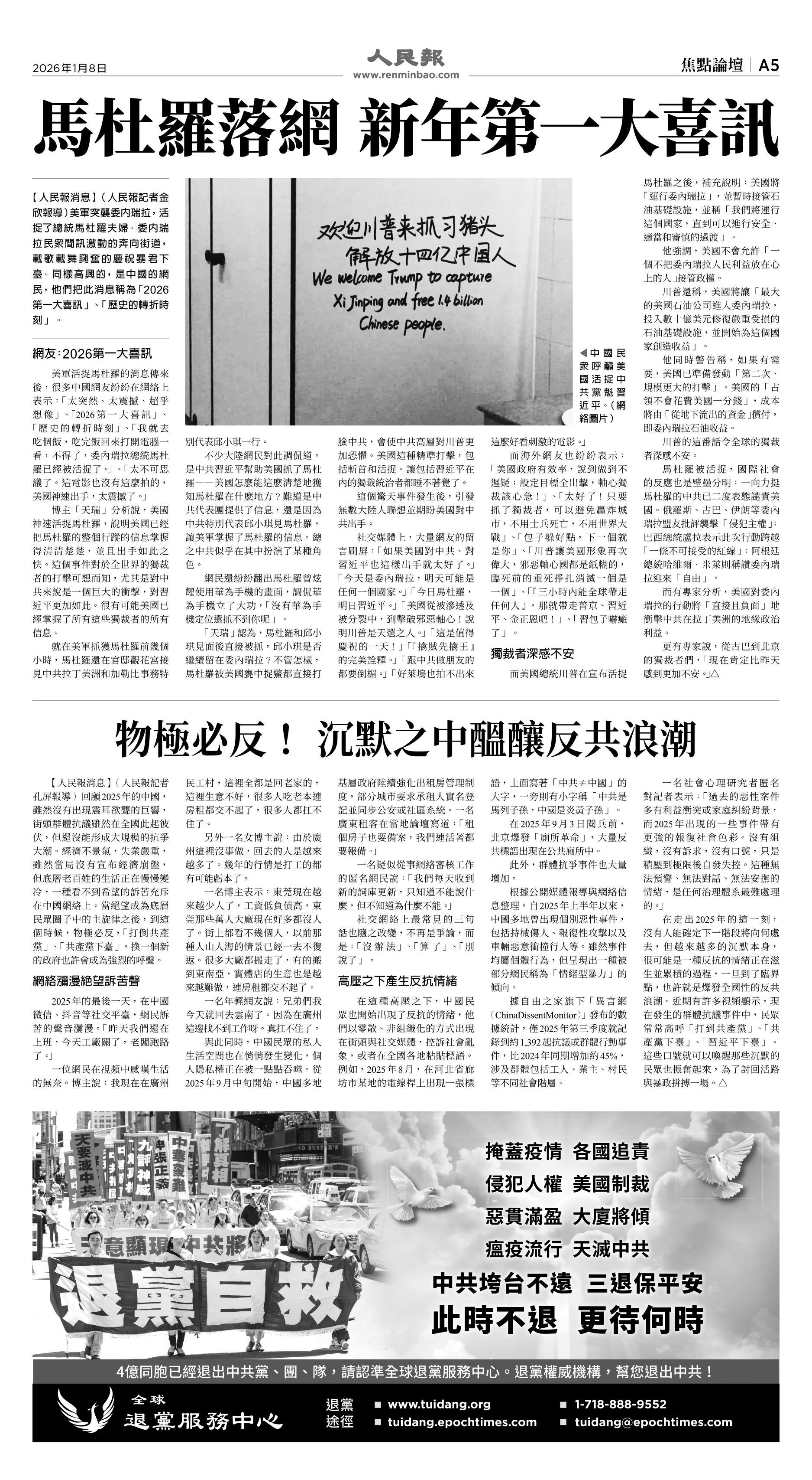 |<<  <<前一頁 < 返回 第1046期  (2026年1月8日)A5版: 焦點論壇 下一頁>>  >>|