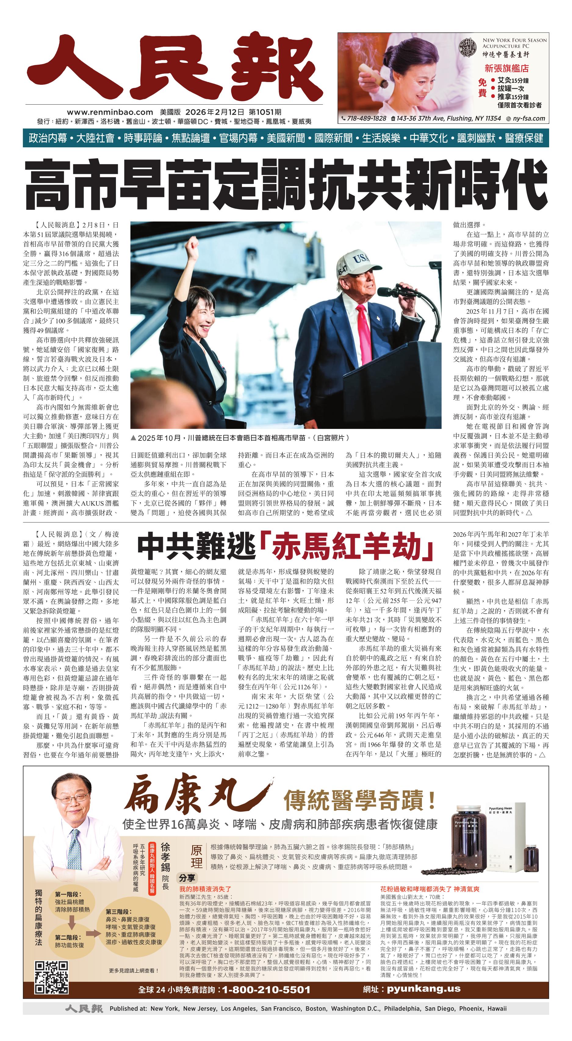 (2026年2月12日)A1版: 头版