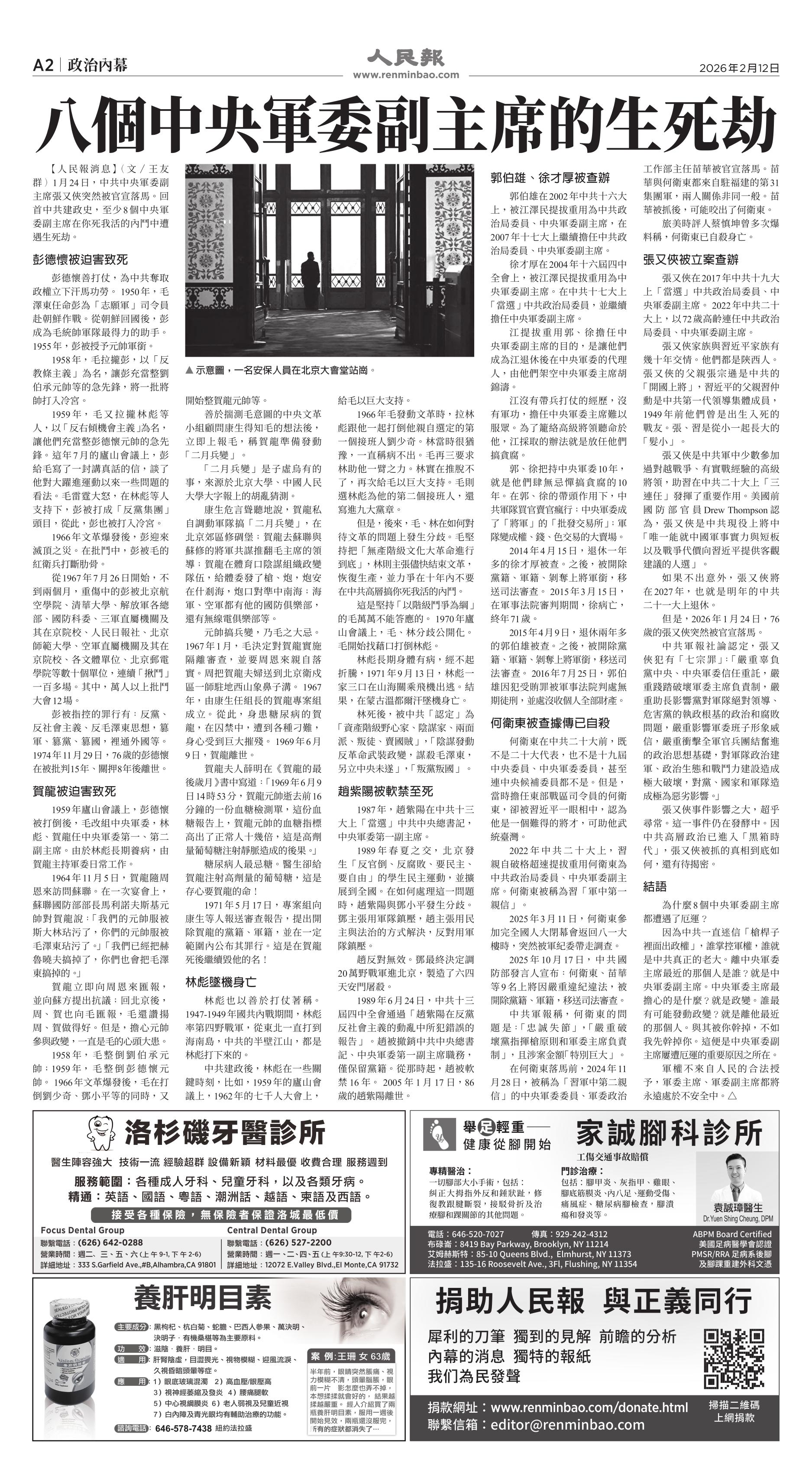 (2026年2月12日)A2版: 政治内幕
