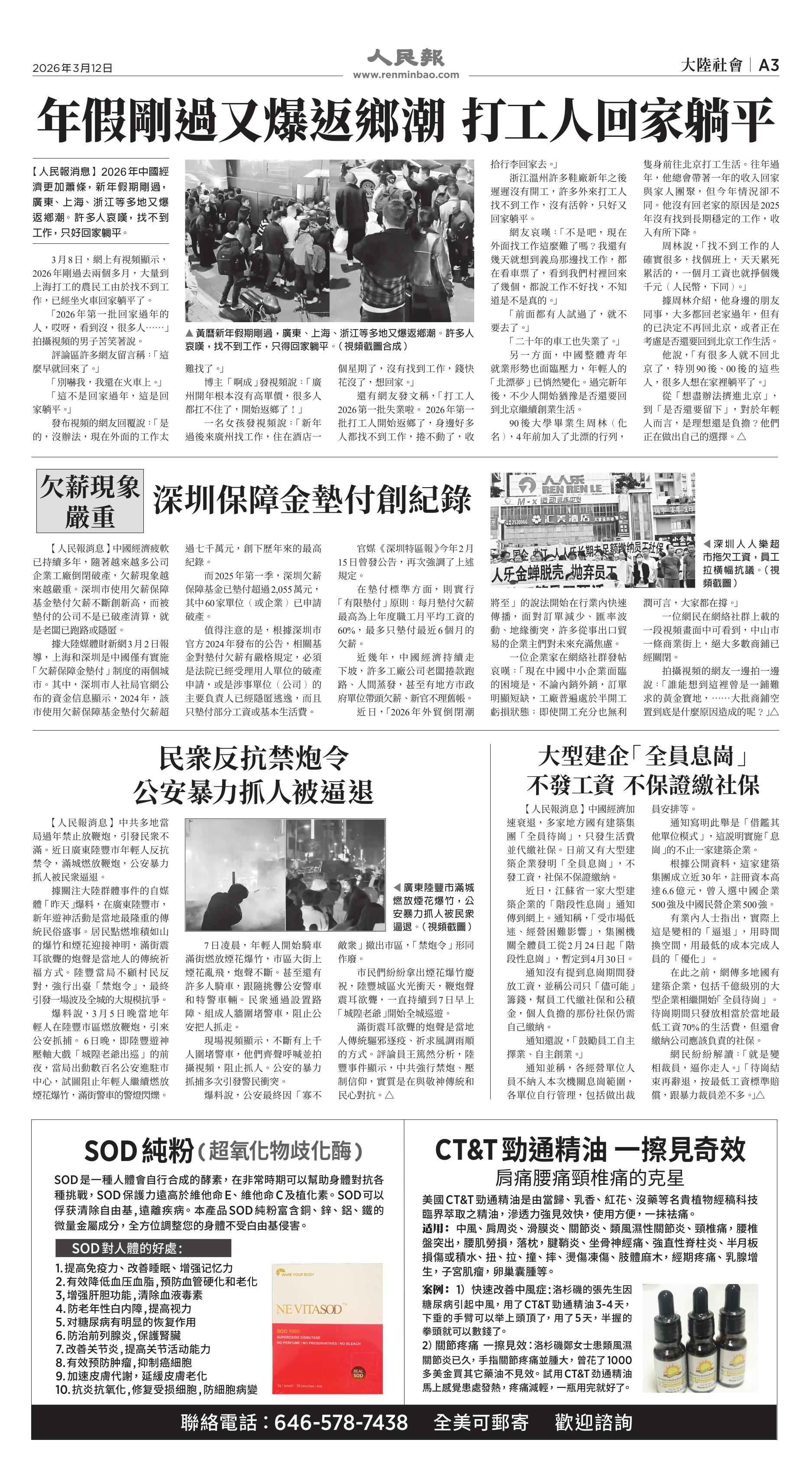 (2026年3月12日)A3版: 大陆社会
