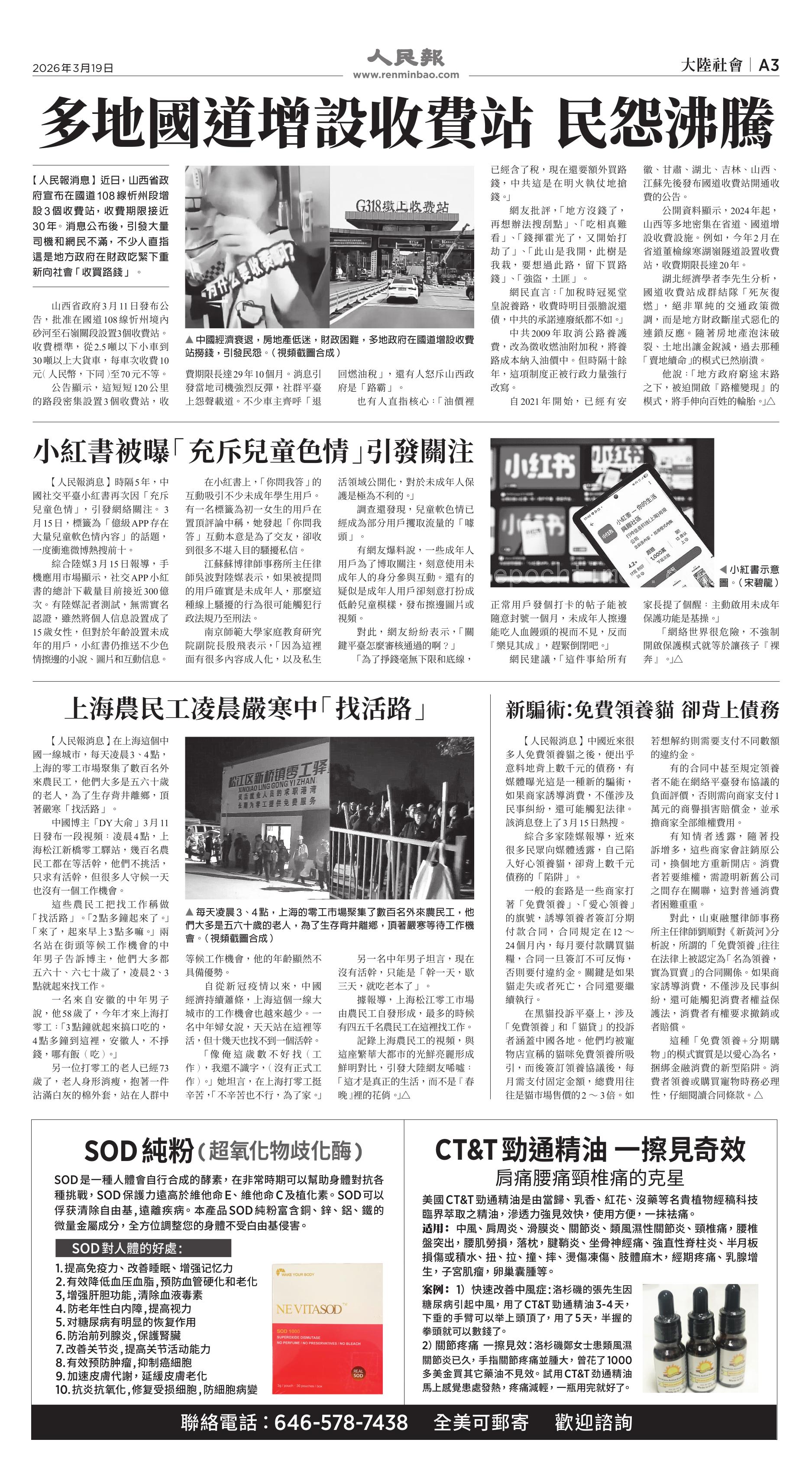 (2026年3月19日)A3版: 大陸社會