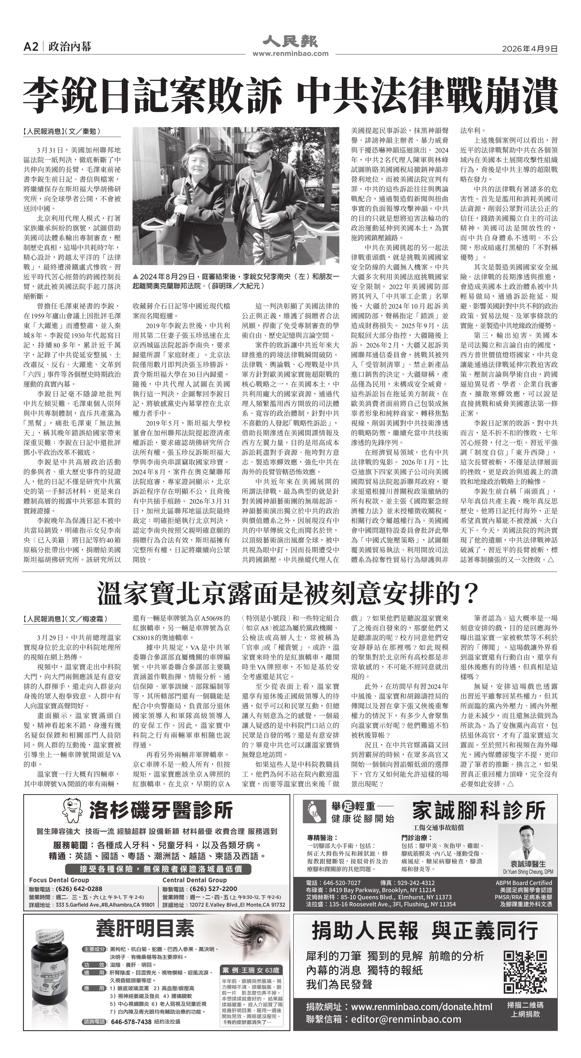 (2026年4月9日)A2版: 政治内幕