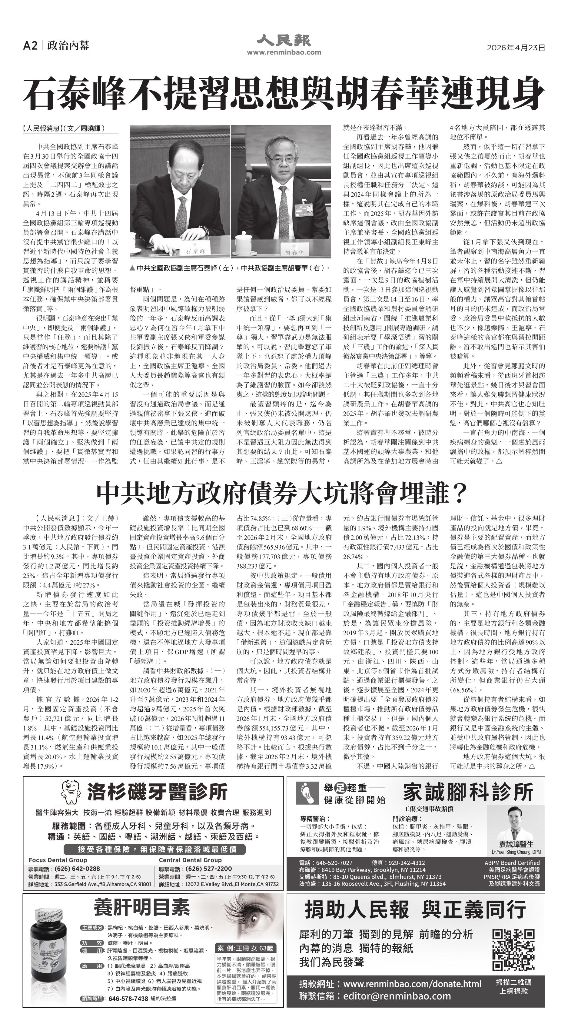 (2026年4月23日)A2版: 政治內幕