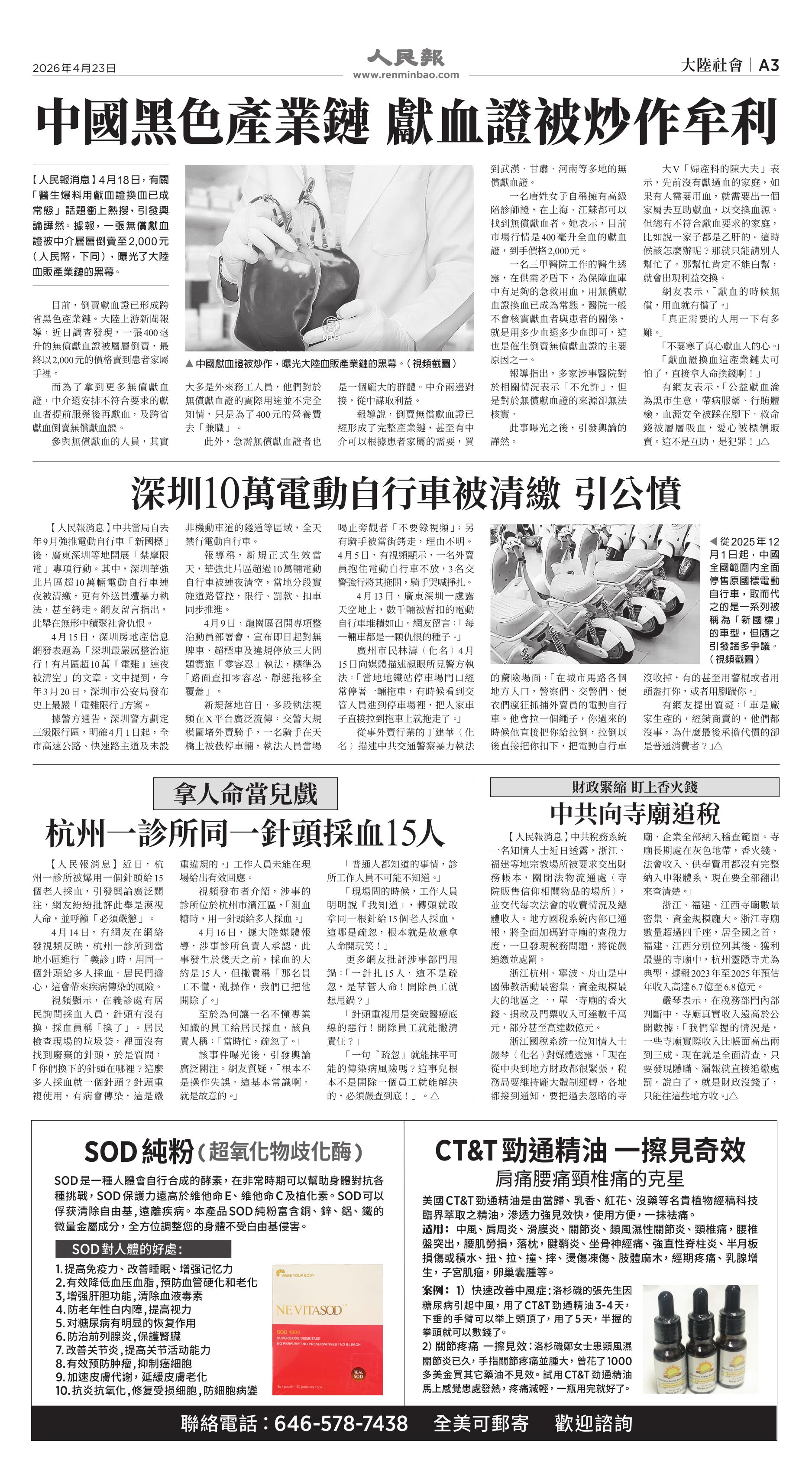 (2026年4月23日)A3版: 大陸社會