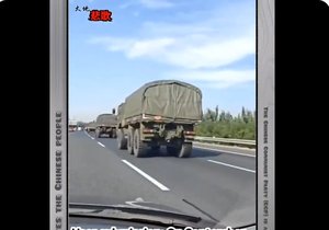 二十大四中全會前,河北省保定市附近的高速公路上出現大批各種類軍車。(視頻截圖)