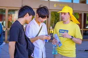 海外及台湾法轮功学员参加排字 感到很幸福 来自墨西哥的西人法轮功学员中文名叫“如明”,目前正在台湾旅行,已经三周。他说,“虽然今天天气很热,但是我很开心可以来台排字,坐的位置是排小卍字符,参加活动后感觉很好,更了解法轮大法是很好的修炼功法。” “如明”形容自己以前是“小混混”,过去他抽烟、喝酒、参加派对,不知道人生的方向。他修炼法轮功后,身体变得健康、心情愉快,每天炼功看起来人很有精神。他的家人和朋友看到他的改变,他们觉得法轮功很好,让他变成了一个“好人”。 薛女士1994年在黑龙江开始修炼法轮功,2014年自中国移居日本。她在日本重新开始修炼。此次在台湾参加排字活动,她感到非常开心,也感到作为大法弟子的荣耀。她表示,今天天气特别好,看到大家都聚集在一起,感觉整个排字场面特别神圣。