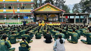 2025年3月至6月,法輪功學員到印度喜馬拉雅山區的學校裡教學生們煉法輪功。(明慧網)