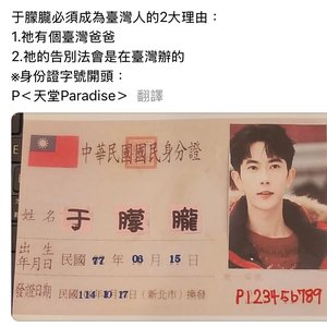 有台湾网友为于朦胧制作了一个台湾身分证。(网络截图)