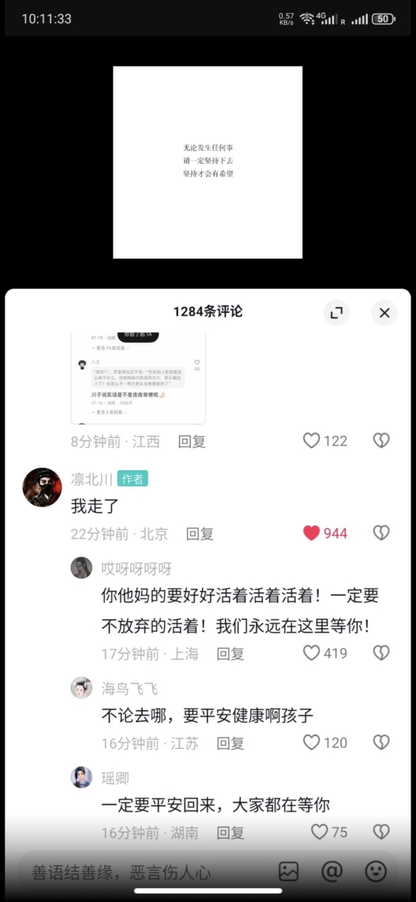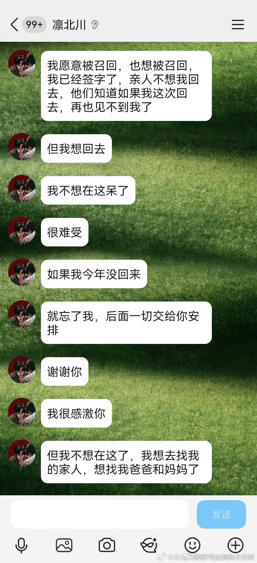 據說,凜北川家裡三代軍人,他的爺爺、父母都已經去世。凜北川告訴北行其野,2026年如果他沒有報平安,就不用等了,讓他們繼續主線,為于朦朧發聲。 北行其野表示,「曾經以為他們會對代代為民犧牲的後人稍留退路,後來才明白,這點反倒成了沒人給他撐腰,任由他被人欺凌的理由」 有網友透露,他的同學在大學演講時說了于朦朧的事情,被公安找上來逼他簽字,要他把責任全部都推到凜北川的身上。 凜北川為何會如此絕望到想去找自己已經去世的父母呢? 據北行其野透露,敵軍付錢找了大量的水軍,出征到外網Threads上,打假凜北川這個人。他們不計任何手段,要把凜北川這個人的所有痕跡全部抹去。這樣以「凜北川」這個名字所做的事情也就不存在了,反抗的聲音就會大幅度降級,凜北川以後是生是死都不是問題了。而且水軍在Threads上發布的一切謠言,內網都會以B站開始,一比一做傳播。內網大量出現這些造謠的內容,衝擊著網友。 現在,牆內和牆外,Threads,油管都有人在傳凜北川的謠言。我們來看看一位網友在11月3號的分析。 這位網友表示,一開始他也並不是完全信任網上的各位發聲者。但是事情追根到底有一個線索是不會變的,就是他參與此事的目的是什麼,誰又是既得利益者。 實際上,對凜北川的狙擊很早就開始了,各種造謠的詞彙像不要錢一樣往上堆。這位網友認為,凜北川並沒有從此次事件中得到任何利益,反倒招來無休止的謾罵和攻擊。那麼順著這條線索往下想,他們為什麼要攻擊凜北川呢?誰又是既得利益者呢? 于朦朧案從一開始,大家都知道這件事情絕對不是意外,沒有法律效力的工作室聲明,不寫具體案情的警情通報,暴風驟雨般的刪帖、封號,不許討論,不許傳播,樁樁件件都表明另有隱情。 這位網友說,凜北川是唯一一個能走到內部的人,也是目前為止遭到攻擊最多的人,因為對面明明白白的知道,誰才是最有威脅的人。 北行其野號召牆內能上外網的都去Threads上打假、舉報造謠凜北川的水軍。11月21號晚上,牆內牆外的戰鬥尤為激烈。但牆內的話語權,並不是網友掌握的。很多網友的微博號都被封禁,北行其野的微博號已經廢掉將近100個了,最後幾千位網友跟著北行其野轉戰到知乎網站,但沒過幾個小時,北行其野在知乎的賬號再度消失。 一直為于朦朧事件發聲的大陸作家魯班的大號被禁言3個月,他的第二個號「作家魯班1986」和第三個號都被炸掉。 魯班因為工作的原因,目前在美國,但還是堅持在網上發聲。經歷過此事,他生平第一次動了移民的念頭。他說:「我不怕死,我怕的是死在這樣一個我深愛著又深感絕望的國度。」 11月18號,他上發表了一篇長文。他寫道:「此刻我坐在美國洛杉磯一家破舊的星巴克,想起國內到處都是的高大上的商場裡氣派的星巴克。」 魯班質問:「我有何罪?我不過是為正義發聲而已」,他說:「因為還殘存一點人性、一點正義之心,我到處救人,然後被抓,我不得不在法庭上大喊:我是在救人!我是無罪的!救人是無罪的!」 魯班表示,現在出現的一些事,讓他對中國社會已經幾乎陷入了完全的絕望。「因為,它徹底突破了我的底線,它讓我的三觀和信仰徹底崩塌!」 確實,在中共高壓下,為正義發聲,為善良呼籲,是一場艱難卓絕的長期戰役,每一位發出的聲音都是無比珍貴的。我們要珍惜每一位網友,特別是走在前面,為網友擋子彈的先鋒。 11月22號,大陸B站傳出抖音號「凜北川」發出的留言截圖。其中一再出現「再見」「我走了」「回不去(家)了」等詞句,但要求其他網友繼續堅持(為于朦朧討公道)。這段視頻很快就被刪除,有網友及時錄製了下來。目前,凜北川所有微博賬號全部被清除。