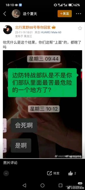 【人民报消息】11月21号,对墙内支持于朦胧的网友来说,是一个不平静的一天。有网友形容,很疯狂,战况激烈,所有为于朦胧在微博上发声的大V们的号全部被炸掉,而且新号刚出,一分钟就被封了。有2个年轻人在这场战役中,军后代凛北川不仅被造谣抹黑,还可能濒临生命危险。他的战友北行其野深夜被请去喝茶,社交媒体账号被跟踪,开一个炸一个。与此同时,大量的水军也在海内外出动,肆意把战局搅乱。邪恶突然如此疯狂,究竟为什么呢?一定是触动到了对方最大的利益。