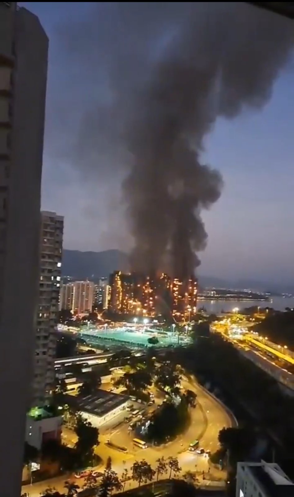 香港北部的大埔宏福苑11月26日下午突發高樓社區大火。(網絡圖片)