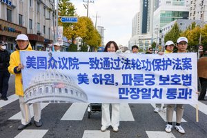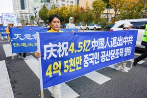 11月2日,韓國首爾中國人聚居地舉行遊行活動,慶祝超過4.5億中國人退出中共黨、團、隊組織,數百人參加。