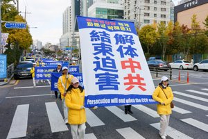 【人民報消息】近日,為紀念「4.5億中國人退出中共黨、團、隊組織」(下稱「三退」)這一里程碑事件,位於韓國首爾的中國人聚居區附近舉行了一場大型遊行活動,向當地的韓國市民和華裔居民傳播相關信息,活動引發當地民眾駐足觀看。 據大紀元韓國記者站報導,2004年11月19日,大紀元系列社論《九評共產黨》在海內外引發三退大潮,截至活動當天,已有超過4.53億人了解中共的邪惡本質,加入這一行列。 然而,很多中國人即使身處海外多年,對於「三退」與法輪功學員遭遇的迫害仍不甚了解,因此韓國的法輪功學員此次選擇首爾大林洞——這一韓國最大的華人生活圈舉行活動,橫幅也多以簡體中文和韓文共同製作,希望能夠幫助當地的中國人了解真相。 主辦方:願「三退」的中國人獲得平安與幸福 韓國法輪大法佛學會祕書長吳世烈在現場發表講話時表示,三退運動「不是單純的政治宣言,而是道德良知的選擇,是面向自由的精神覺醒運動。」「我們將站在正義和真相一邊,大力支持中國人民走向自由的三退運動,並同他們站在一起。」 他還談到,打壓法輪功不僅僅是中國內部的問題,而是擴散到包括韓國在內的世界各地的國家恐怖行為,「韓國的自由民主面臨著中國共產黨的宣傳和滲透的日益威脅……我們強烈譴責中共反人類暴行,堅決要阻止中共對韓國的滲透和宣傳工作。」 11月2日下午,遊行隊伍在首爾警方協助維持秩序下從集合點出發,路線約兩公里。很多行人看到「天滅中共」「愛國≠愛黨,中國≠中共」「三退是福」等標語,紛紛駐足觀看並拍照留念。 韓國退黨中心負責人趙龍燦(音)表示:「我們並非單純反對什麼或製造干擾,而是想說出真相。我們沒有仇恨,而是真心希望人們脫離共產黨,獲得真正的幸福和真正的和平。」 他還稱,現在「三退」人數比以前增加了很多,「現在有很多中國遊客來(韓國)之後集體做『三退』,大林洞地區『三退』人數也很多。真的祝賀他們、感謝他們,希望他們作為真正的中國人,找到幸福與平安。」 趙龍燦還談到,自三年前開始,退黨中心的主要活動圍繞著「End CCP」進行,「我們向韓國市民解釋為什麼共產黨必須終結,很多韓國市民都表示同意,大家都一致表示支持,目前簽名人數已經超過200萬……我們希望共產黨終結後,能有一個全新的中國。」 韓國市民發聲:支持中國人追求自由 多位觀看遊行的韓國市民也表達了各自的立場。 韓國市民李良先(音)表示:「共產黨必須消失——因為共產黨不是為了全體人民,而是為了某一個人、為了他們黨的幹部、為了他們自己吃飽喝足。」,共產主義這個詞聽起來很好——一起吃一起活,其實是剝削無辜人民的勞動。 一名19歲的高中生林准錫(音)說,他希望所有中國人也能獲得自由民主,像在韓國一樣,沒有壓迫,幸福地生活。 參加遊行的華語自媒體主播文睿(音)表示,疫情之後,越來越多的中國人了解到共產黨的邪惡,所以從內心決定跟共產黨徹底決裂,而通過「三退」表明立場,不會冒太大的風險,「這會是一股很大的力量——我們現在是在告訴共產黨:不,我們不跟你走。 我覺得中國整體經濟很差,各方面生活越來越難,所以未來會有更多人看清中共本質,並退出。」 他還向已做過「三退」聲明和尚未作出這一決定的中國人寄語,「對已經『三退』的人,我想說:你們真的很勇敢,你們不僅是為自己,也是在為很多中國人甚至全世界的人做正確的事。而對於還沒『三退』的人,我想說:共產黨表面看起來很可怕,但其實並非如此。請認清它的本質,鼓起勇氣,儘快退出。」 以下為遊行現場照片: