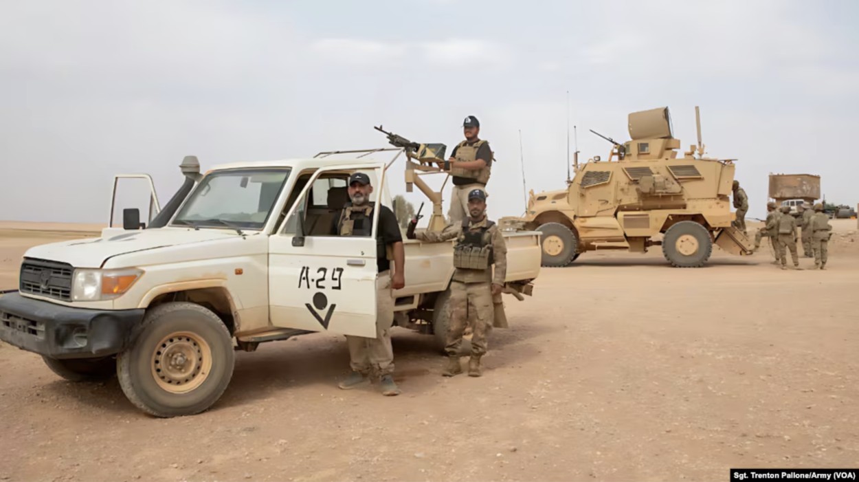 資料照片:美軍士兵與敘利亞武裝人員在敘利亞衝突降級區巡邏。(2025年6月11日)
