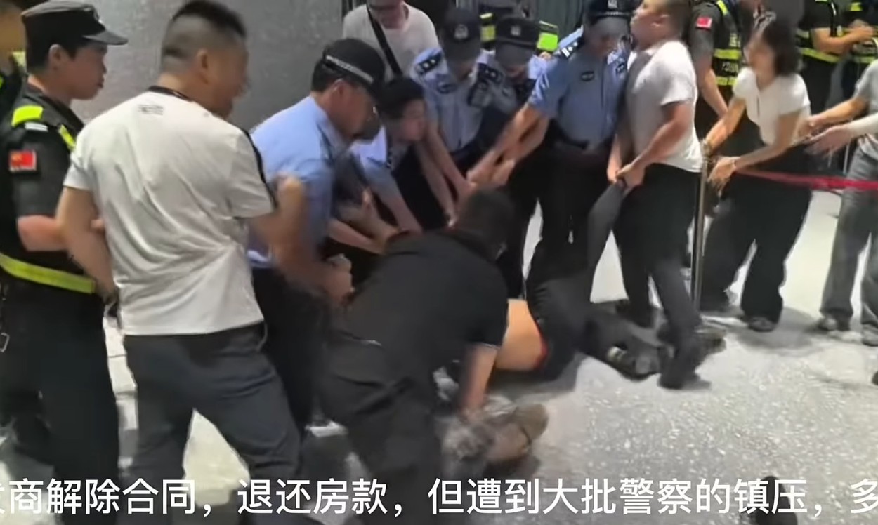9月12日,四川眉山仁寿县,数百名融创未来城业主发起维权行动,要求开发商解除合同,退还房款,但遭到大批警察镇压。(视频截图)