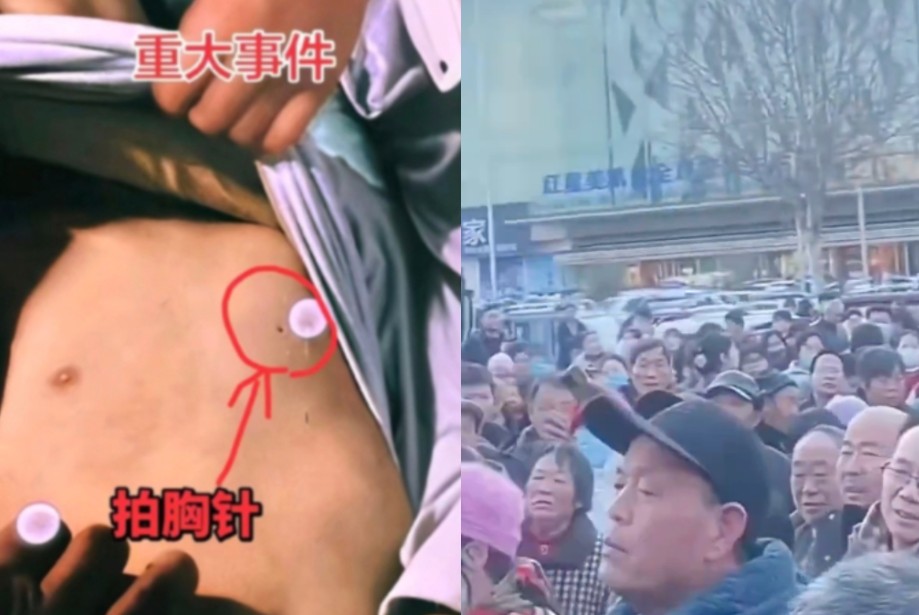 2026年1月11日,河南官方通報,在校內死亡的13歲中學生是「心源性猝死」,稱其左胸針孔是法醫抽血形成的,引發全網質疑:「家屬沒到,法醫先到了?」(視頻截圖)