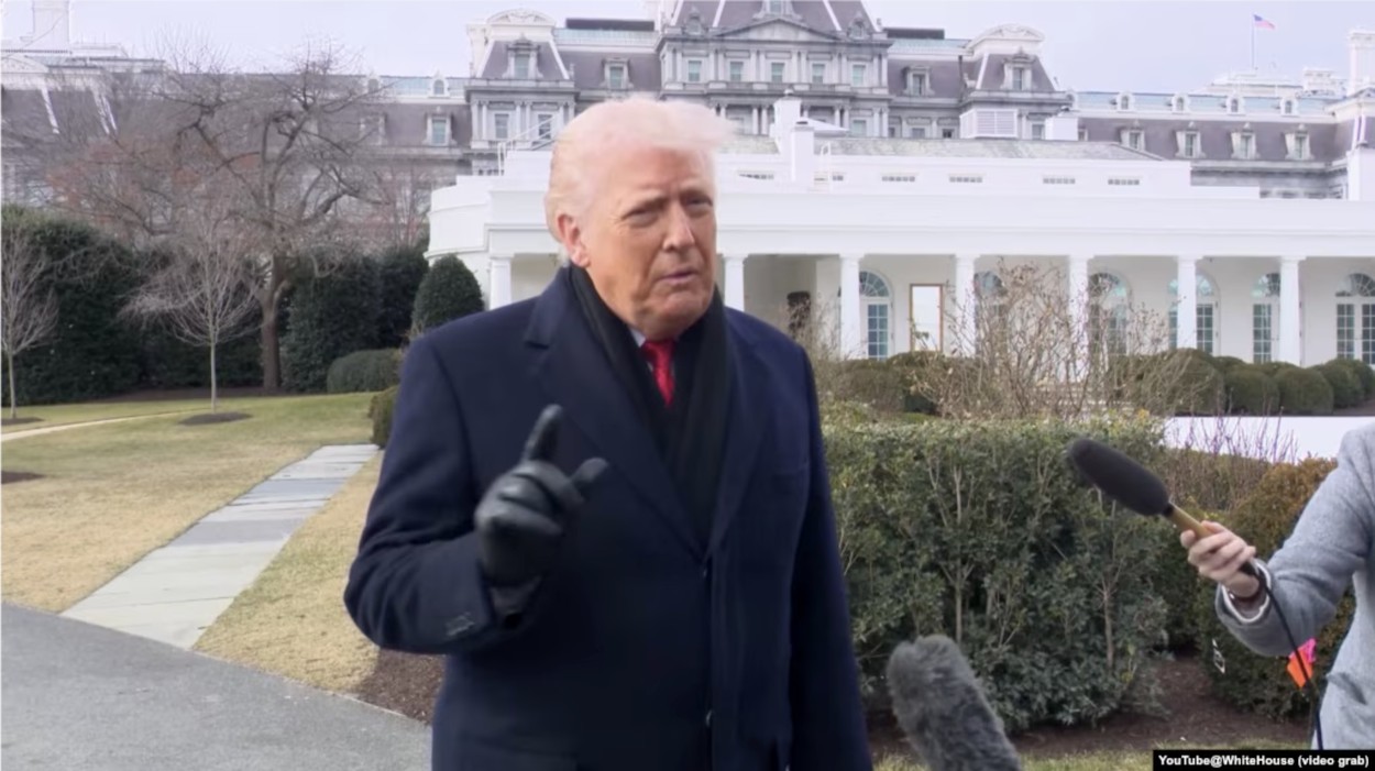 川普总统星期五(1月16日)在离开白宫时回答记者提问。