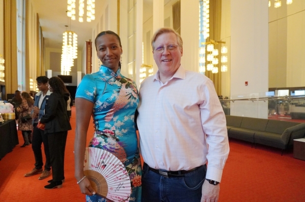 2026年1月18日下午,美國有線電視與寬帶協會(NCTA)技術副總裁、美國能源部前高級官員Robert Cantu(右)和一家公司的首席數據工程師Giada Garnett觀看了神韻世界藝術團在華盛頓DC肯尼迪藝術中心歌劇院的第十場演出。(李辰/大紀元)