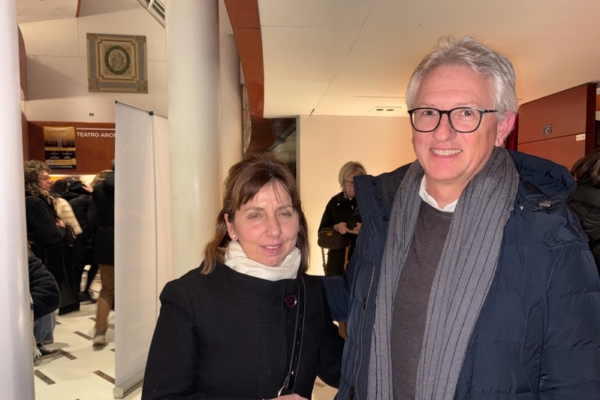 2026年1月20日晚,石化及石油化工領域的企業董事長Alessandro Pagani與太太Annamaria觀看了神韻紐約藝術團在意大利米蘭阿爾欽博第劇院(Teatro degli Arcimboldi)的第八場演出。(Leo Botnarenko/大紀元)