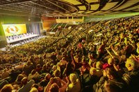 2009年,台湾6,000法轮功学员排出《转法轮》一书封面。(大纪元)