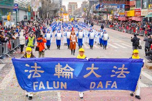 【人民報消息】「返本歸真迎新年,春滿人間新三才」,2月21日,丙午馬年大年初五,紐約中國新年大遊行在北美最大的華人社區法拉盛舉行,觀眾人山人海。 法輪大法團體共襄盛舉,隊伍壯觀,色彩繽紛,中華文化氣息濃郁,展現法輪大法和「真、善、忍」的美好,給民眾帶來喜慶、祥和和祝福。有觀眾說:希望法輪功回到中國大陸遊行。 法輪功隊伍壯觀 《辭舊迎新祝願歌》在街頭迴蕩 始於1996年的法拉盛新年遊行,是北美地區規模最大的新年遊行,今年踏入30週年的里程碑,場面喜慶、熱鬧,法拉盛中心區鑼鼓聲聲、龍騰獅躍,賀歲聲不絕於耳。 法輪功團體每年參加這個遊行,已有二十多年,給華人和各族裔的民眾拜年送福。他們的隊伍流光溢彩,中華傳統文化色彩濃厚。 法輪功的隊伍有氣勢如虹的天國樂團、「天宮仙境」花車、喜慶的舞龍舞獅、威震十方的太鼓、婀娜多姿的蓮花舞蹈、步伐整齊的旗陣、英姿颯爽的腰鼓隊⋯⋯多姿多彩,亮麗紛呈,讓人目不暇接。 特別是身穿古代將士服飾的天國樂團一出場,立即震撼全場,鼓樂齊鳴,響徹雲霄,氣勢磅礴,如萬馬奔騰,巨大的慈悲能量場覆蓋街區,街上兩旁觀眾的眼睛聚焦,他們紛紛舉起手機拍照、錄像。