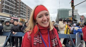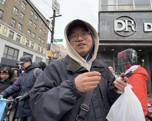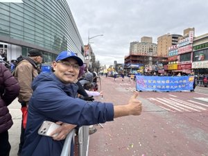 法輪功的隊伍中一首喜慶、歡快的《辭舊迎新祝願歌》不斷在街頭迴蕩,給民眾送福:「願你得平安,願你結善緣,願你時刻存善念,越走路越寬。法輪大法好,字字金光閃,願你記住真善忍,來年再相見!」 中西族裔民眾人山人海 盛讚法輪功 法拉盛中心區的人流量每天超過10萬人次,是僅次於紐約時代廣場的紐約市最繁華的社區,觀看遊行的中西族裔民眾人山人海,扶老㩦幼,在Main街上擠得裡三層外三層。他們的臉上洋溢著笑容,紛紛對法輪功學員的隊伍讚不絕口。 「每年最期待法輪功隊伍!」