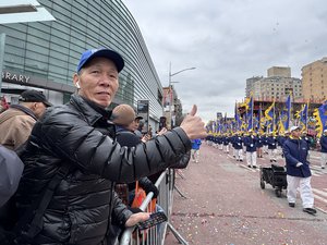華人杜海榮看到法輪功隊伍出現後,眼睛濕潤了。他激動地說:「非常雄壯!非常震撼!我每年最期待的就是法輪功的隊伍!」 「法輪功最大的功德就是揭露真相,傳播真相。」杜海榮說:「法輪功說的都是人民的心裡話,他們這麼多年傳播真相,傳播美好,我很佩服法輪功學員,我想我以後也會成為這樣的人。實際上,信仰自由、精神自由是最重要的!」 「希望法輪功回到中國遊行!」 華人楊磊表示:「法輪功是一種宗教,是一種信仰,像這樣的遊行就是美國自由、民主的象徵;在中國沒有這樣的自由,很多中國人都沒有參加過遊行;希望有一天法輪功回到中國遊行!」 華人許建康表示:「法輪功隊伍氣勢磅礴,希望在中國,也有這樣的遊行,希望中國人有自由、尊嚴和人權;希望有一天法輪功學員回到中國大陸,法輪功繼續發揚光大!」