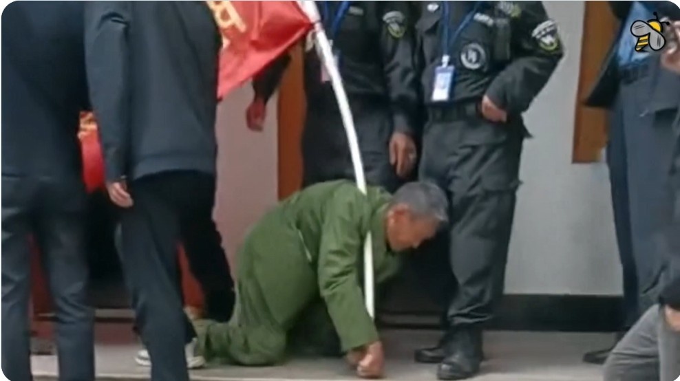 2025年11月,云南一名退伍老兵为了不足千元的补贴,放下尊严跪地爬行。(视频截图)
