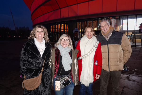2026年2月3日,Arnaud Zarifian先生(右一)与伴侣Blanche(右二)和朋友Isabelle和Estelle观看了神韵在斯特拉斯堡天顶音乐厅的第二场演出。(亦凡/大纪元)