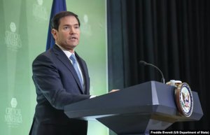 卢比奥国务卿在美国国务院就关键矿产部长会议同新闻媒体交谈。(2026年2月4日)
