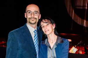 2026年3月17日晚,音樂家Enrico Minaglia與律師Orsola Milani在意大利羅馬協和音樂廳(Auditorium della Conciliazione),觀看神韻紐約藝術團在當地的第六場演出。(Francesca Rotondi/大紀元)