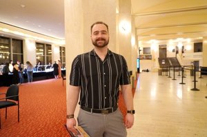 2026年3月21日晚,某應用程式的產品設計者和擁有人Efrain Rivera 觀看了神韻新世界藝術團在密爾沃基馬庫斯表演藝術中心(Marcus Performing Arts Center)的首場演出。(唐明鏡/大紀元)
