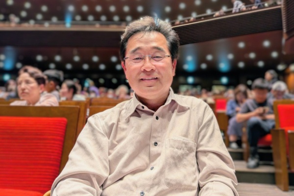 2026年4月14日下午,日本知名製藥公司前業務高管早乙女博(Saotome Hiroshi)觀看了神韻新紀元藝術團在八王子J-COM廳(J-COM Hall Hachioji)舉行的第三場演出。(牛彬/大紀元)