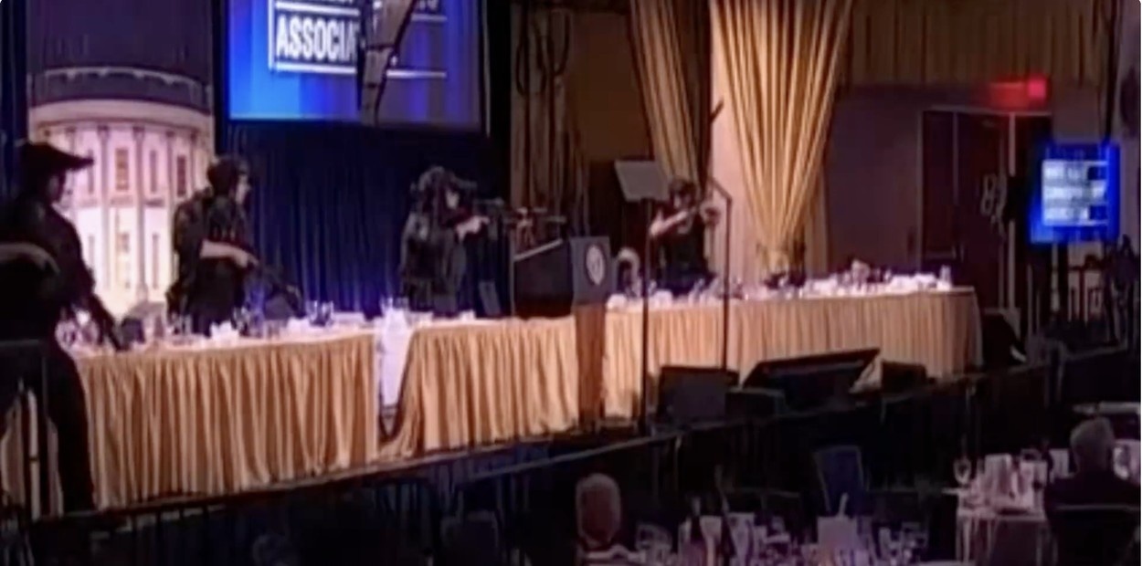 週六(4月25日),在華盛頓特區希爾頓酒店(Washington Hilton) 舉行的白宮記者協會晚宴上發生槍擊事件。(視頻截圖)