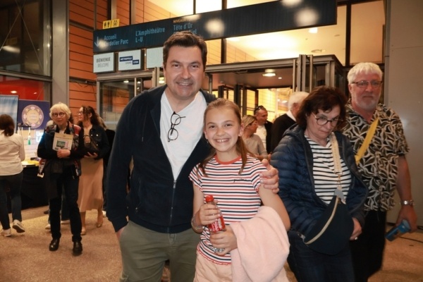 2026年4月6日晚,IT公司老闆Christophe Roure攜女兒Lily一同觀賞了美國神韻世界藝術團在法國里昂國際城圓形劇場(L’Amphithéâtre 3000)的首場演出。(張妮/大紀元)